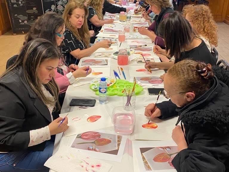 Under the guidance of the talented painter Ivone Martins, participants immersed themselves in the enchanting world of watercolor, exploring the techniques, colors, and forms that make this art one of the most delicate and expressive. Between brushstrokes and smiles, everyone had the opportunity to experiment, learn, and let their imagination soar — regardless of prior painting experience.